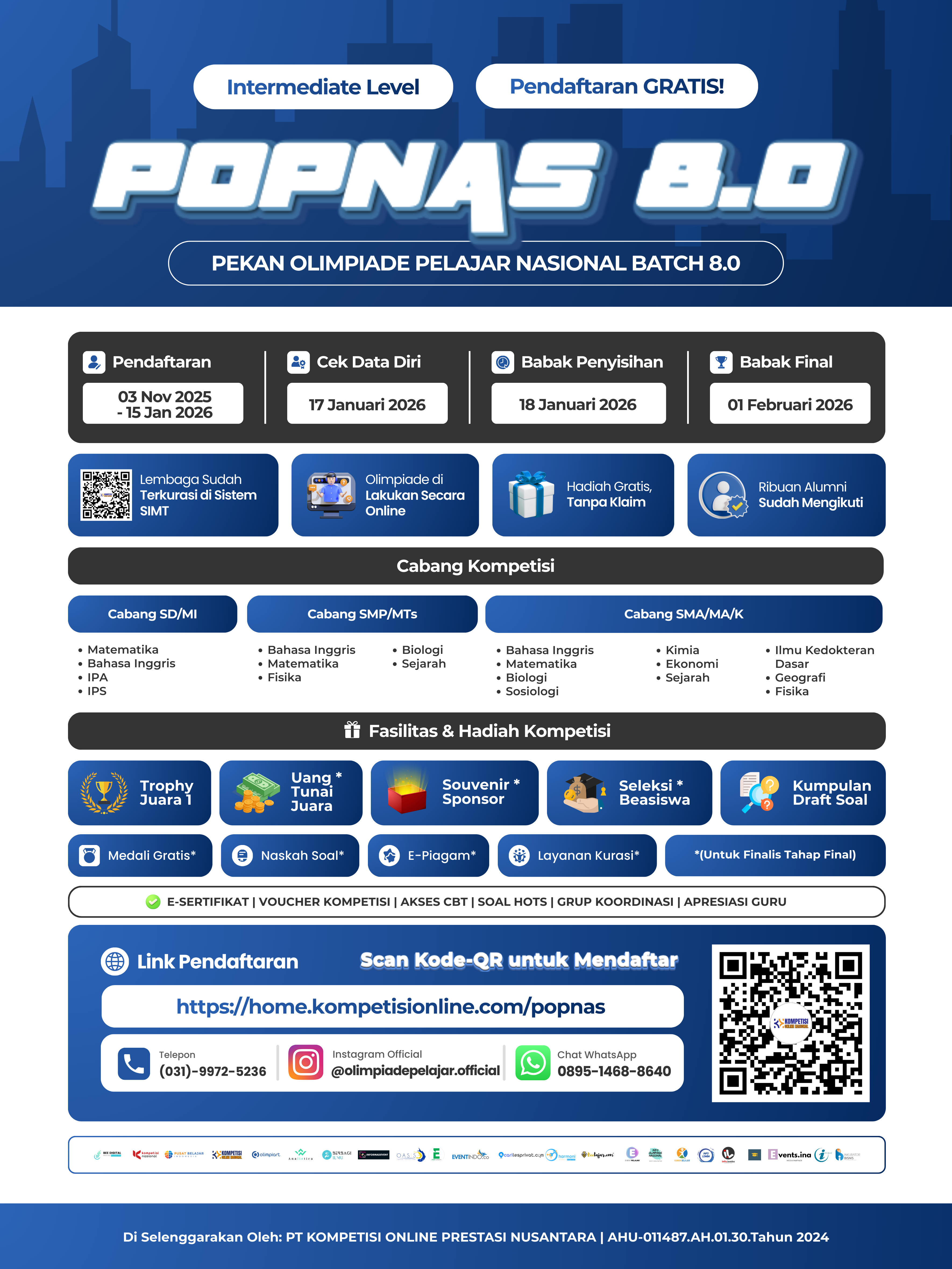 Tunjukkan kemampuanmu, raih prestasi nasional, dan jadilah inspirasi baru bersama POPNAS 8.0 – Intermediate Level.